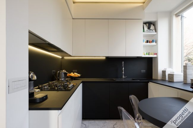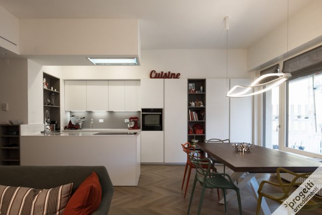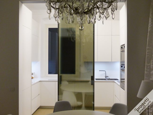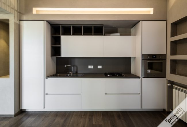 progetto realizzato in collaborazione con lo studio di architettura Elena Garetto. location: alture di Genova, in uno splendido appartamento panoramico con vista mare. Lo spazio destinato alla cucina è piuttosto ristretto: sistemare le colonne sulla parete di fronte alla zona operativa, ha permesso di snellire la composizione e ottenere sufficiente spazio contenitivo. Abbiamo attrezzato tutte…